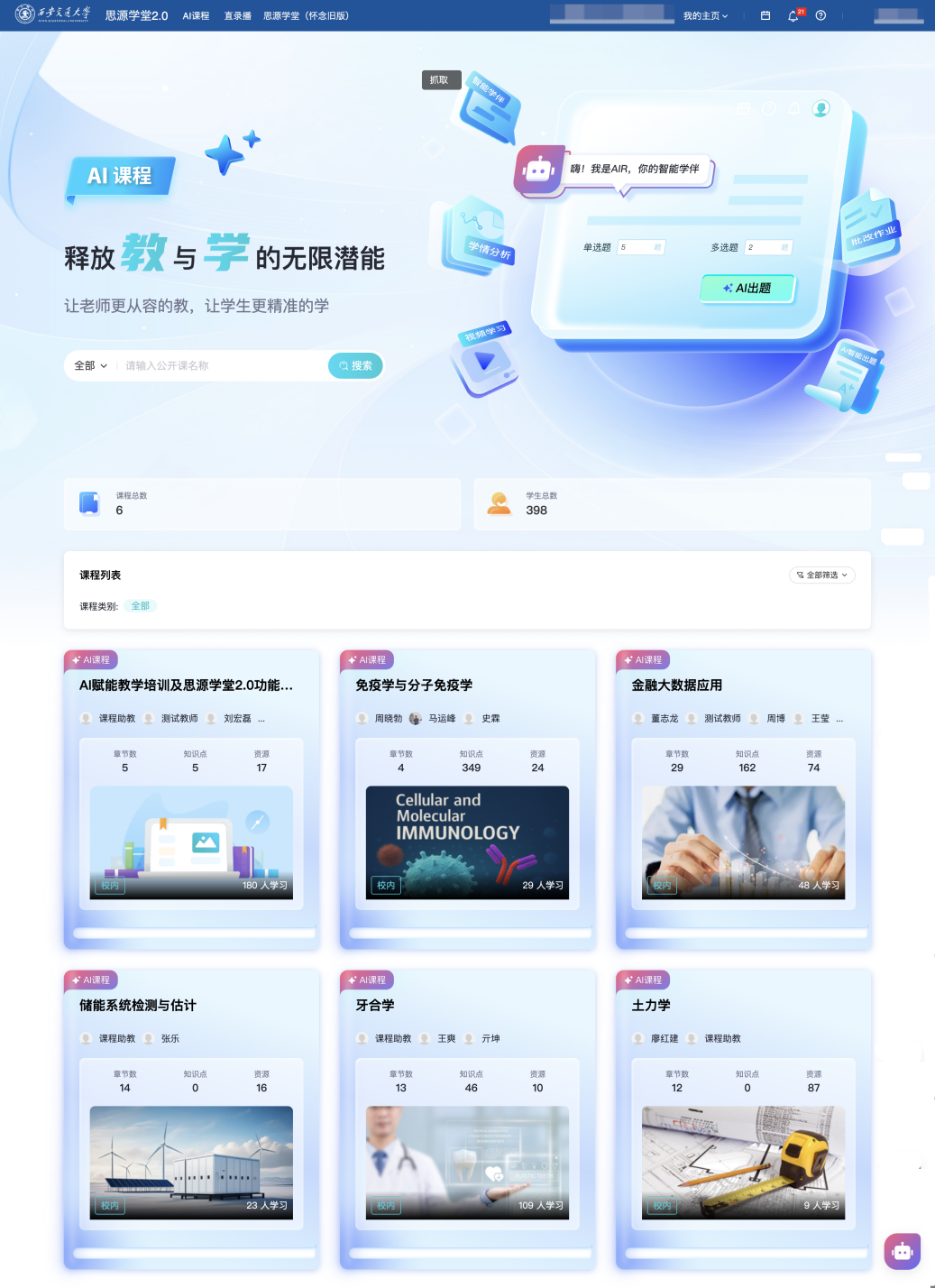 建立了实正在讲授案例库;此中《金融大数据使用》《药学生物学》等课程已构成AI赋能课程扶植的示范效应。案例通过整合DeepSeek-R1狂言语模子,开展针对性培训,全国仅有10所高校持续三次入选全国“人工智能+高档教育”使用场景典型案例,加强各类平台东西的智能化升级,优化办理办事系统,连系网信核心“交晓智”AI平台,